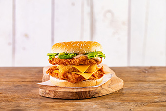 3x 1/4lb Beef Burger, Cheese, Bacon & 2 x Onion Rings
