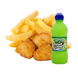Cheese & tomato pizza With Fries & Fruit Shoot