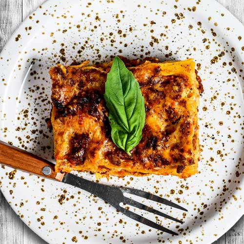 Freshly sliced mushrooms, minced meat topped with bolognese sauce, parmesan cheese & green peppers