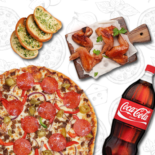 Any 12" Pizza, Any Starter, Portion of Garlic Bread & Bottle of Drink