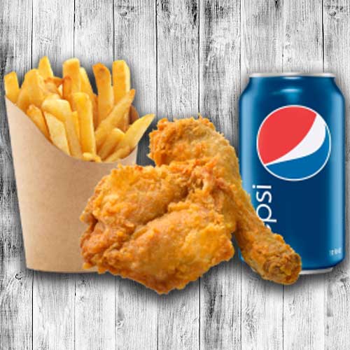 6 Pcs Chicken, 6 Pcs Hot Wings, 2 Coleslaw, 3 Chips & Bottle Of Drink