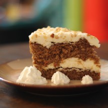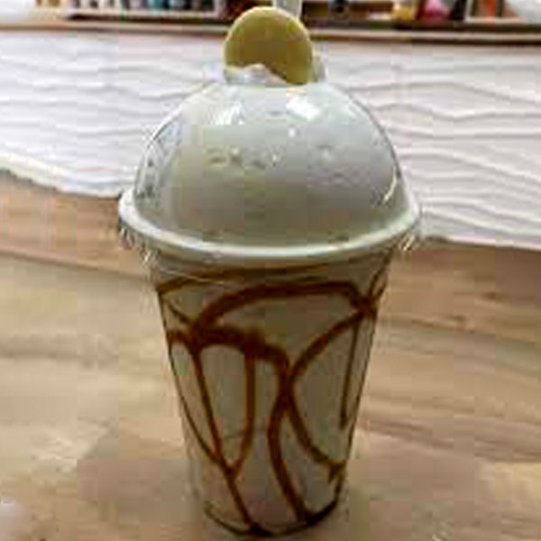 Crepe covered in chocolate sauce topped with chopped banana’s and drizzled with white chocolate sauce served with a scoop of kelly’s vanilla bean ice cream.