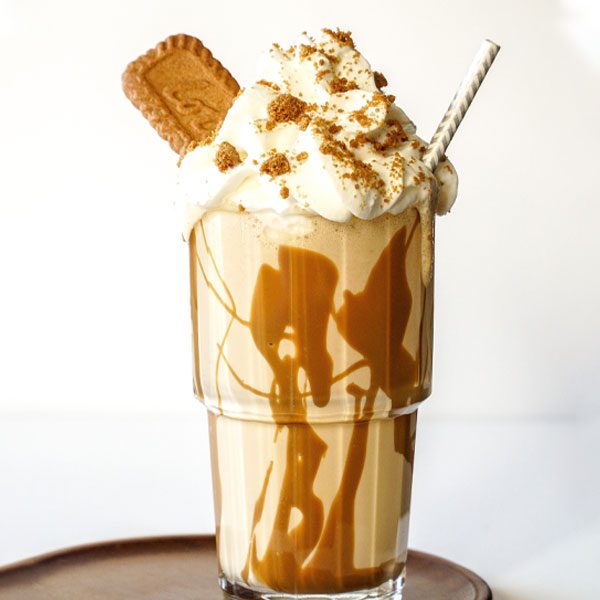 A fresh golden waffle with lotus biscoff spread, crushed lotus biscuits and drizzled in lotus biscoff sauce served with a scoop of kellys vanilla bean ice cream