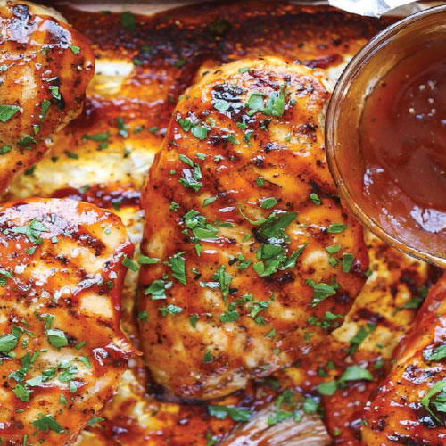 BBQ sauce, chicken, ham, green peppers, extra cheese