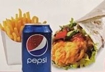 Chicken wrap, lettuce and mayonnaise, fries & drink