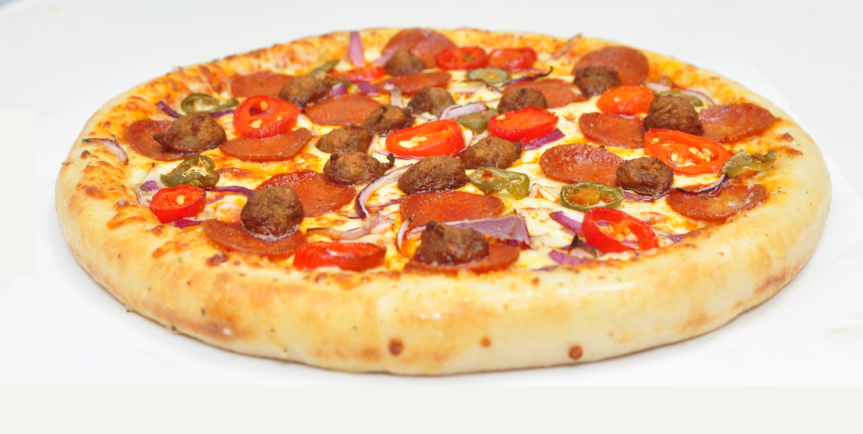 Jalapenos, spicy meatballs, onions & pepperoni.