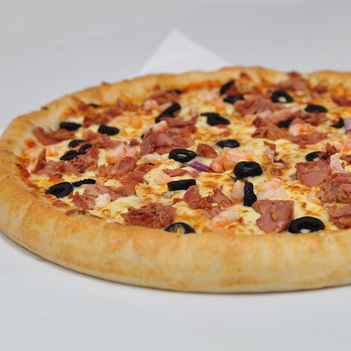 Magnificent tasting tuna, prawn, olives, mozzarella, cheddar & onions