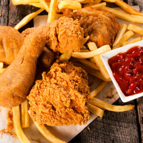 6pcs Of chicken coated in crispy bread crumbs & served with 1 dip (ketchup/bbq)