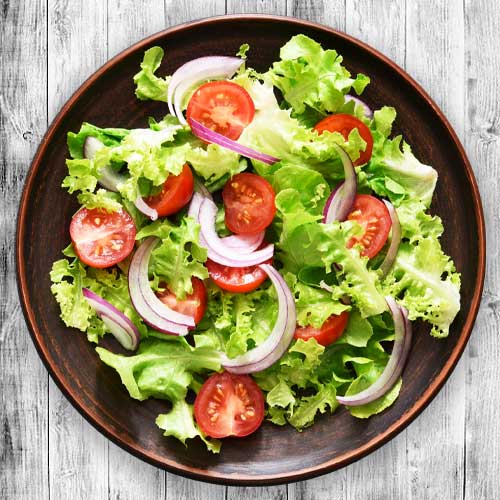 Lettuce, cucumber, onion rings, sweetcorn, carrots, olives, coleslaw, cherry tomato and 1000 island dressing