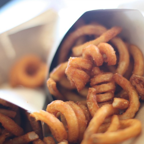 Chicken strips (3), chicken nuggets (3), jalapeno peppers (3), mozzarella sticks (3), wings (3), potato wedges and 2 cans of soft drink