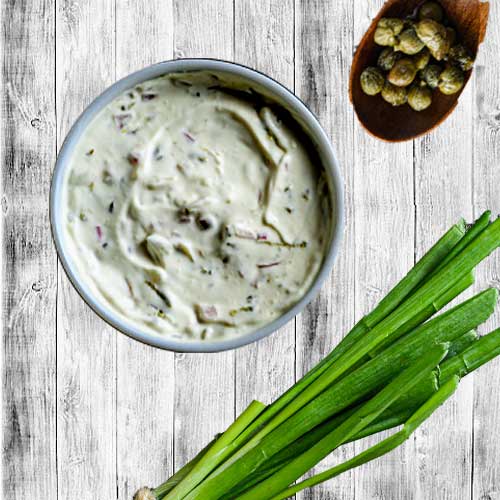 Onions, lettuce, tomato, cucumber with thousand island dressing