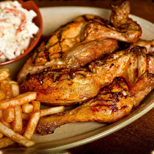 Piri piri half grilled chicken (any flavour), with chips and drink