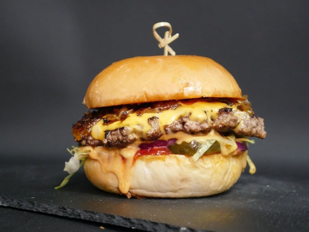 Seasoned fine cut beef patty with pickles, salad and BBQ sauce