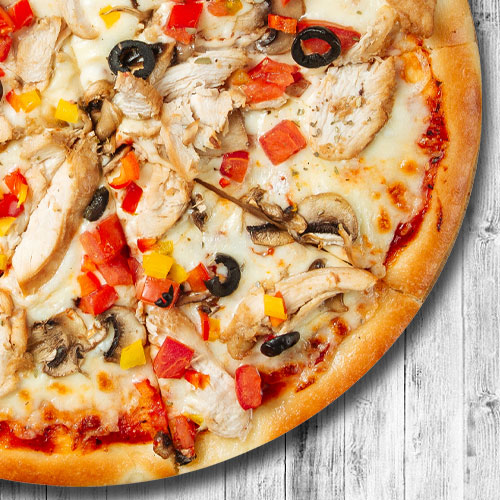 Cheese, tomato, chicken, mushroom, sweetcorn, soya sauce